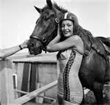I very much hope I am not the only person who has never before heard of – or even conceived of - horse diving as a career option. It was in 1923 that Sonora ((1904-2003) responded to an ad seeking a horse diver, placed by William “Doc” Carver. He signed her on and soon she was the star of the show: riding a horse up to a sixty-foot tower and then hanging on for dear as it dove into a puddle below.